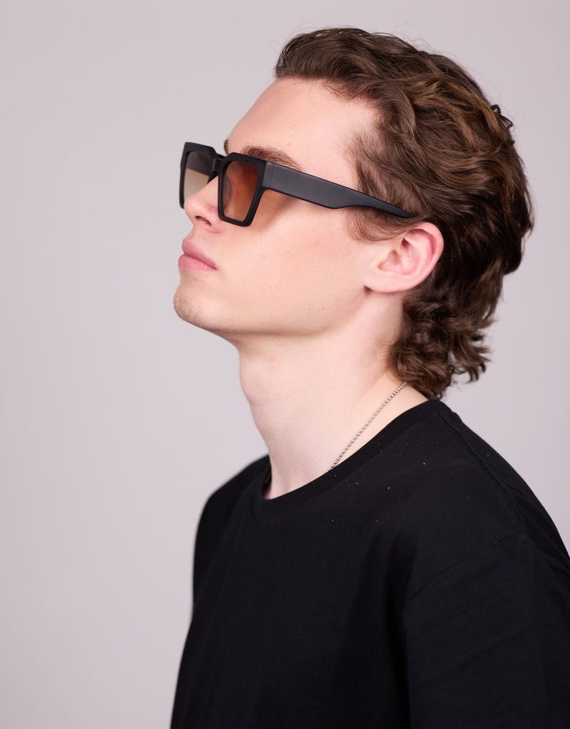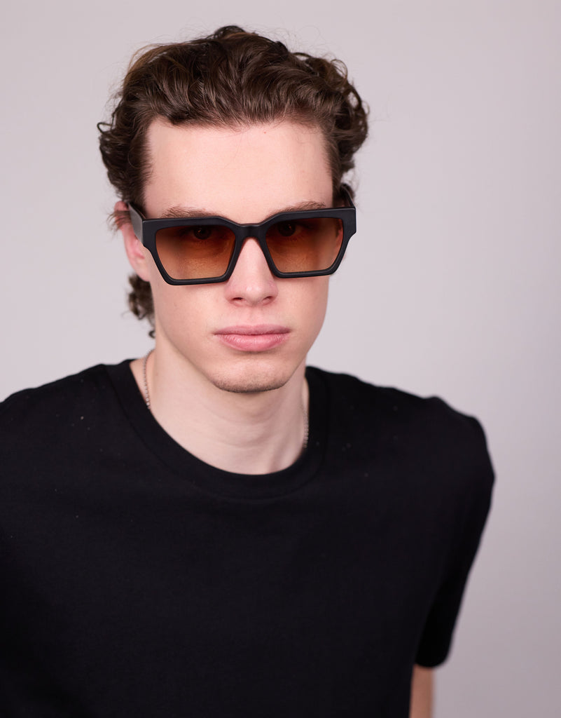 Our deep, muted black with a smooth, non-reflective finish, adds a modern, understated edge completed with either a Blue to Purple or green to brown lens.