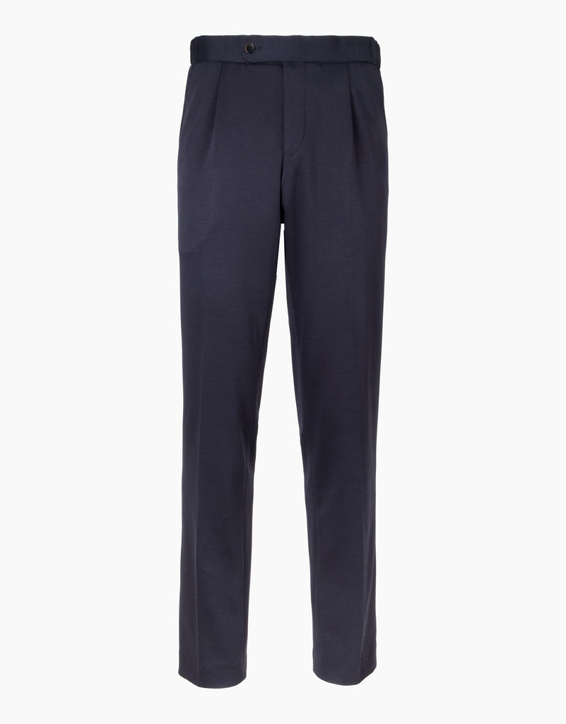 Stay comfortable and stylish with our Hagley Navy Jersey Trouser. The flat front and elastic side waistband provide a perfect fit while the high-quality fabric keeps you feeling good all day long.