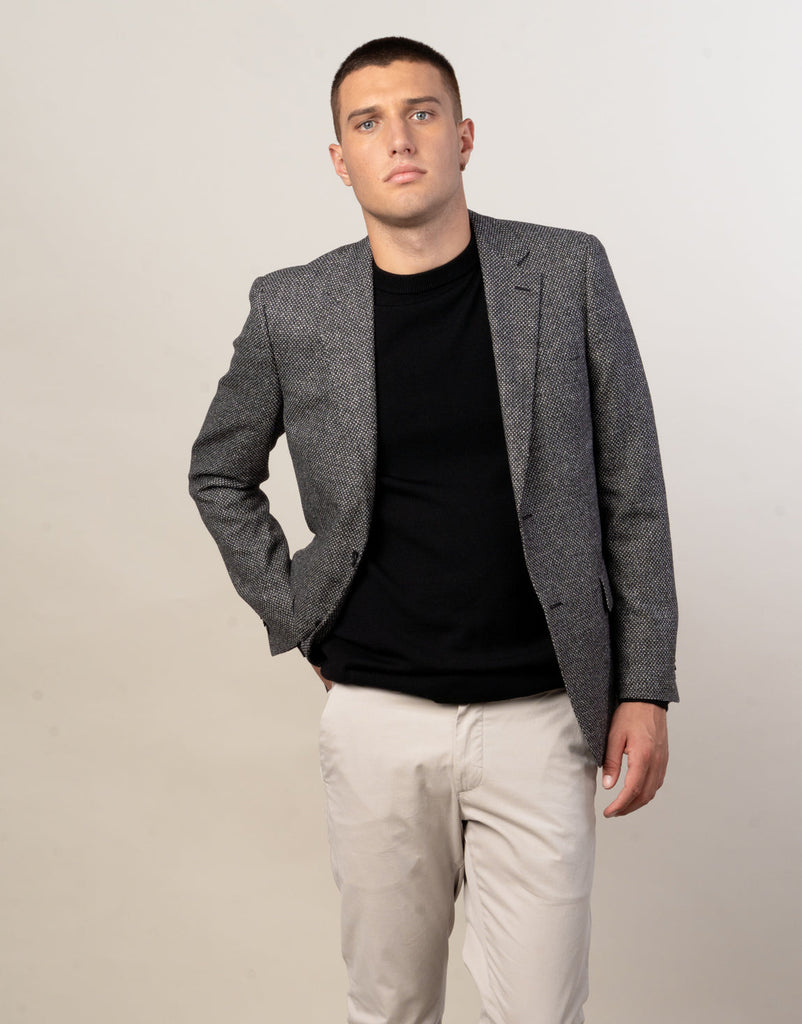 Upgrade your style with the Hawker Black & White Birdseye Blazer. Crafted with a luxurious blend of wool, polyester, linen, and polyamide, this blazer combines sophistication with durability. Look sharp and feel comfortable all day in this versatile piece.
