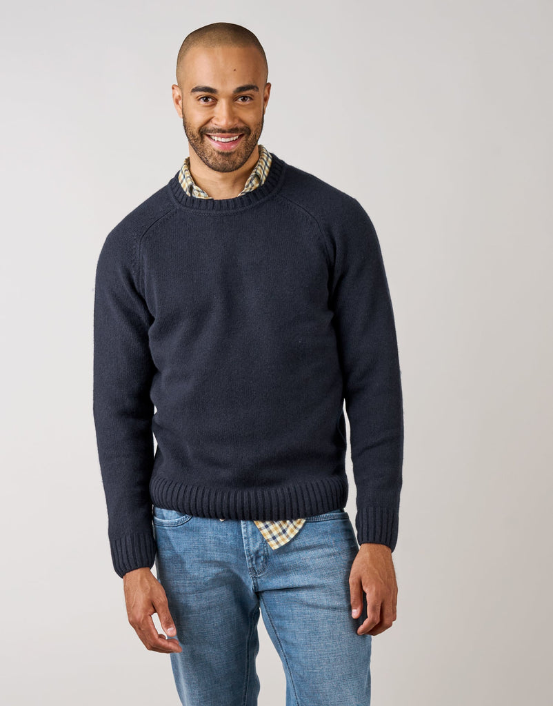 Discover the joy of cozy and resilient comfort with the pure lambswool fabric of the Shetland sweater. Its soft texture and timeless design make it ideal for everyday wear. Indulge in the luxurious comfort and long-lasting quality of the Navy Shetland Sweater. The pure lambswool material provides a gentle touch that will keep you snug day after day, while its versatile and functional design makes it the ultimate choice for your wardrobe. Whether you're running errands or relaxing at home, this sweater will elevate your comfort and style to new levels.
