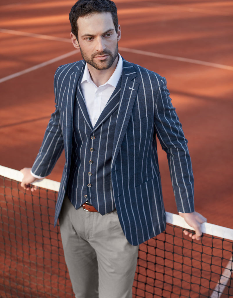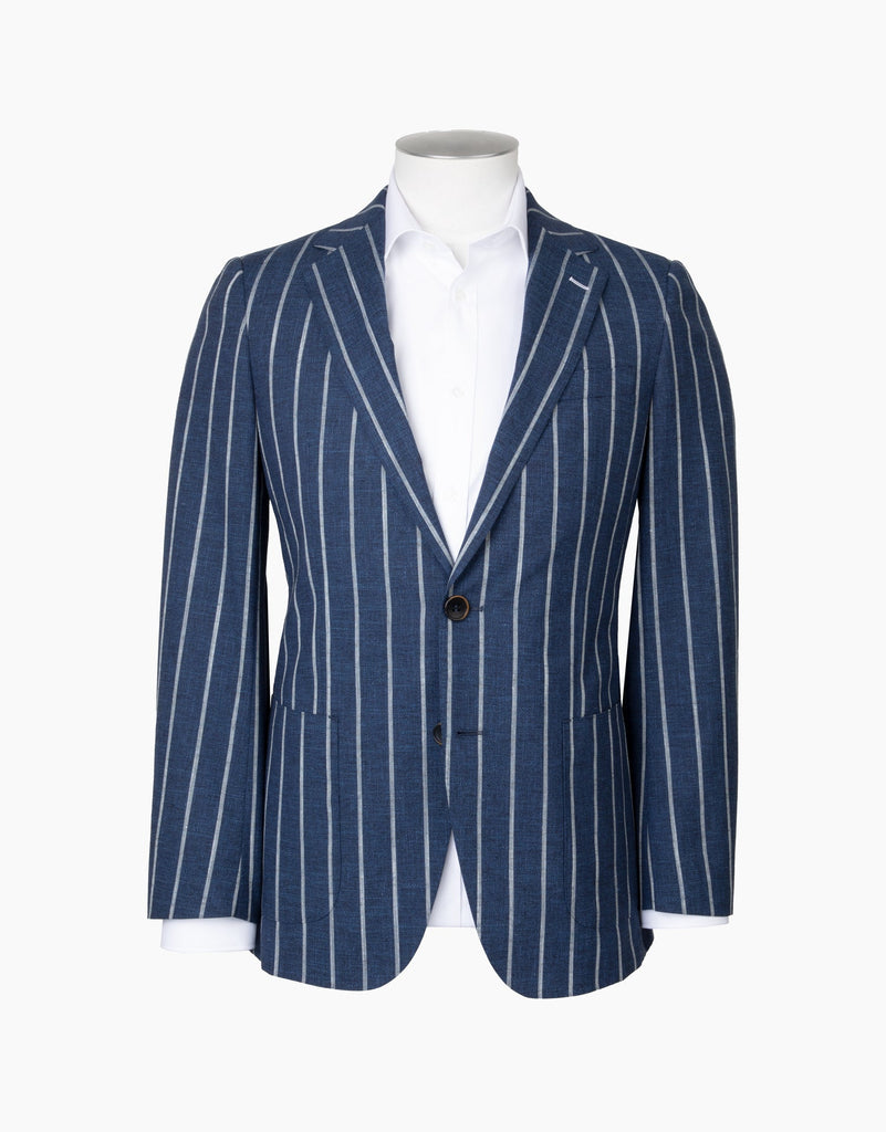 Stand out this season in our Pearse blue stripe blazer. Constructed from a luxurious Italian blended fabric of Wool, Cotton and Linen, it is ideal for summer time dressing. Featuring an unlined design and patch pockets, the Pearse blazer exudes sophistication.