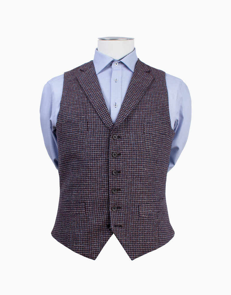 Shelby Maroon & Blue Guncheck Waistcoat