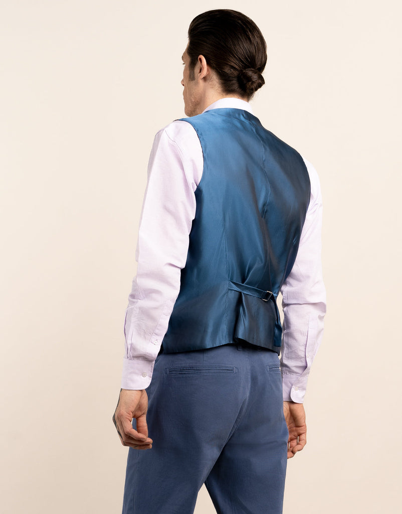Made with a mix of wool, polyester, and linen and finished with a tactile touch, our Shelby waistcoat in maroon and blue guncheck offers versatility. Wear it with a matching blazer, layered under a contrasting blazer, or over a shirt - the choice is yours.